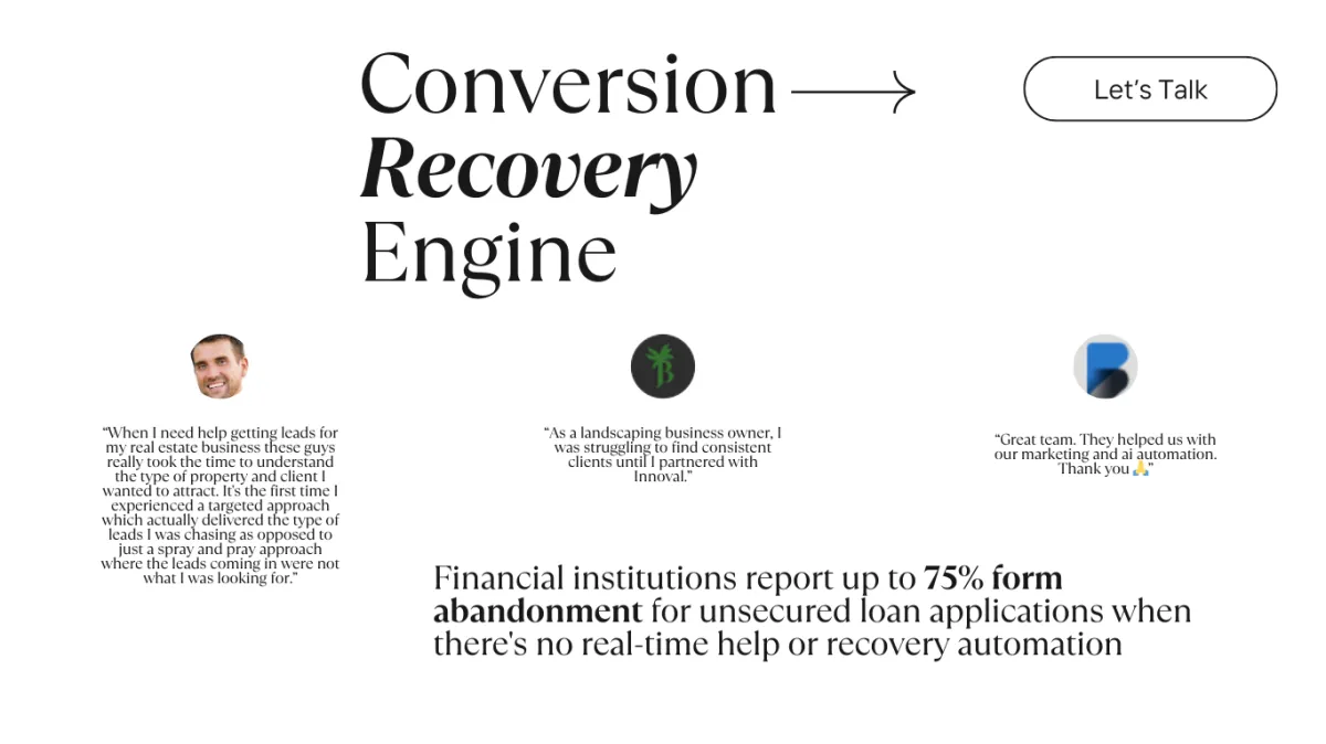 Our AI-driven Conversion Recovery Engine™ tracks form drop-offs, re-engages cold leads via SMS + email, and converts more qualified leads into completed applications — automatically.